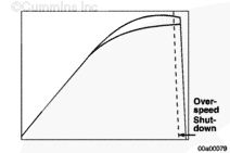 超速停機閾值是 ECM 切斷發(fā)動機供油時的發(fā)動機轉速值。該閾值可從工廠默認值向下調整。可以使用 INSITE™(零件號 3825145)進行此調整。
