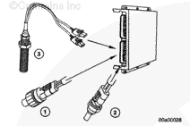 發(fā)動機 CTS 向 ECM 發(fā)送用于發(fā)動機保護系統(tǒng)的信號。CTS 位于節(jié)溫器殼體的上部套管中。