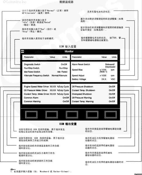 QST 發(fā)動機配備有發(fā)動機保護系統(tǒng)。該系統(tǒng)監(jiān)測關鍵的發(fā)動機轉速、溫度和壓力,并在高于或低于正常工作范圍時記錄故障診斷代碼。如果存在超范圍的情況,公共預警電路就會接通。操作者會得到 OEM 選擇設備的報警。當超范圍工作的情況越來越嚴重甚至造成發(fā)動機停機時,就會接通公共報警電路。