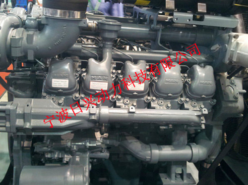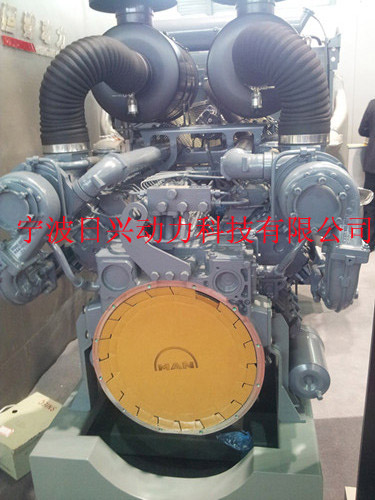 德國曼MAN工業(yè)重型發(fā)動機(jī)、四沖程、直接噴射、水冷、廢氣渦輪增壓及中間冷卻。