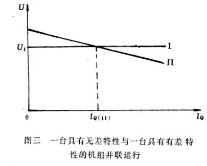 Assuming the first generator has no difference characteristics, its regulation characteristics such as figure three curve I, second generators with a differential characteristics, its regulation characteristics such as figure three curve II.