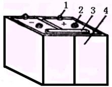 酸性蓄電池主要由容器、極板、隔板三部分構(gòu)成,其外形結(jié)構(gòu)如圖所示。
